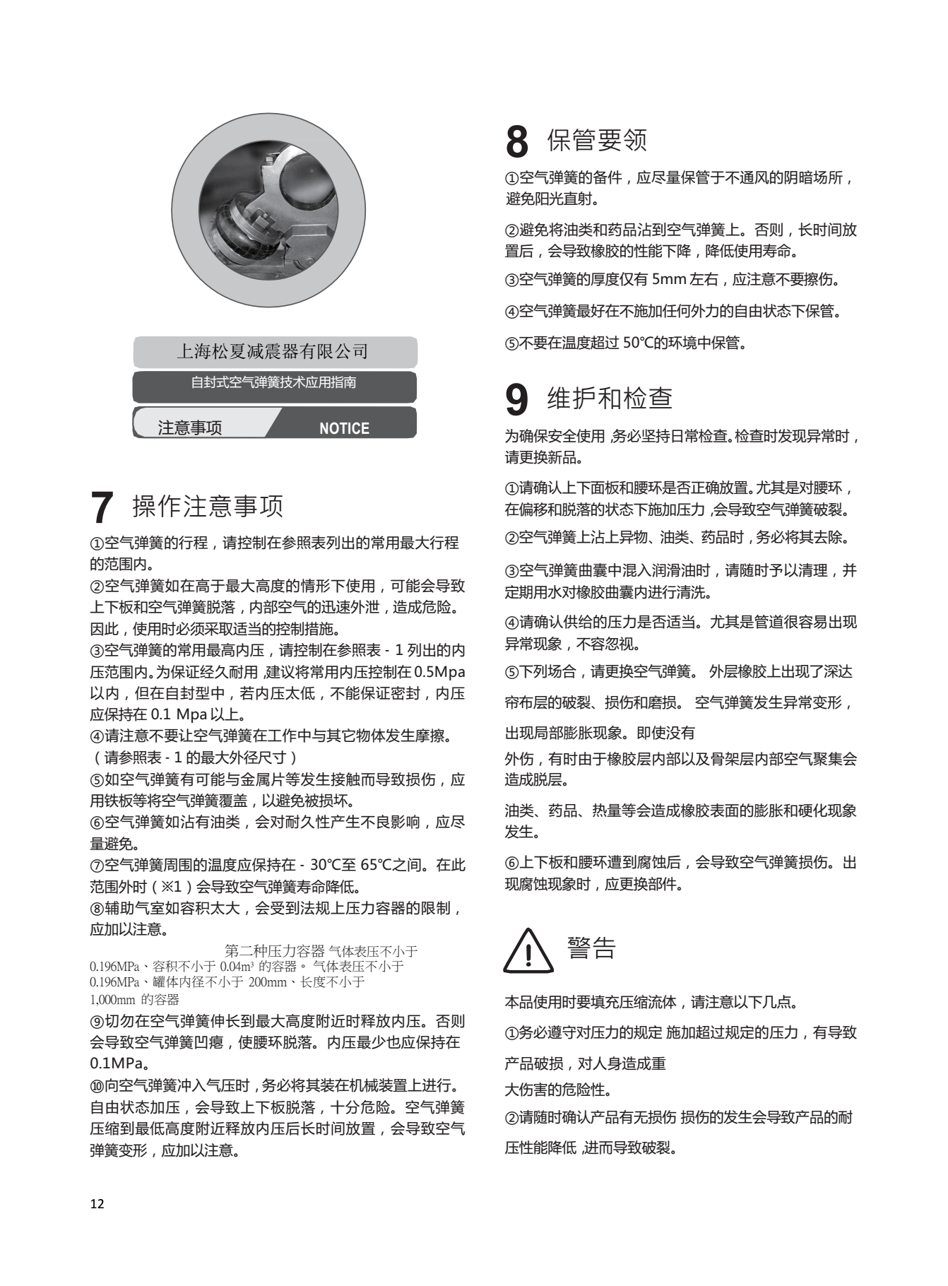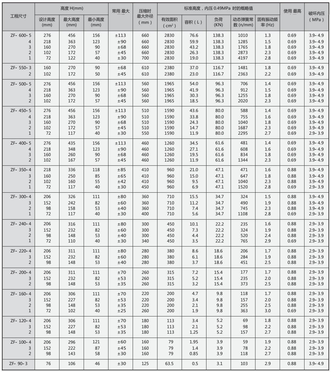 6、高度可控制,如与高度调整阀并用,对不同负载可保持恒定高度。