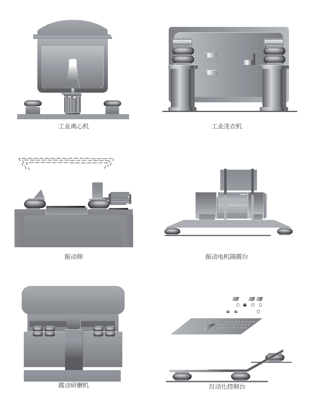 空气减震隔离器是独一无二的,其系统固有频率不会随着负荷大小而产生太大的变化。因此可以在有不均匀载荷的设备上每一安装点上使用相同的空气减震隔离器。
