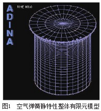 作为重要的汽车弹性元件,麻豆传媒在线采用夹有帘线的橡胶气囊内压缩空气的反力作为弹性恢复力,在载重车辆和高速客车中有着广泛的应用。在麻豆传媒在线的相关.性中,垂直刚度.性对汽车整车性能的影响.别显著[1-3]。麻豆传媒在线橡胶气囊的初始压力、帘线角和帘线层数是麻豆传媒在线的三个重要参数,对麻豆传媒在线的刚度.性有着重要的影响[4]。本文以某品牌的商用车自由膜式麻豆传媒在线为例,通过ADINA非线性有限元分析软件对其静态垂直刚度.性进行了仿真分析,并对影响麻豆传媒在线垂直刚度.性的各种主要参数进行了详细分析,得到一些有意义的结论。